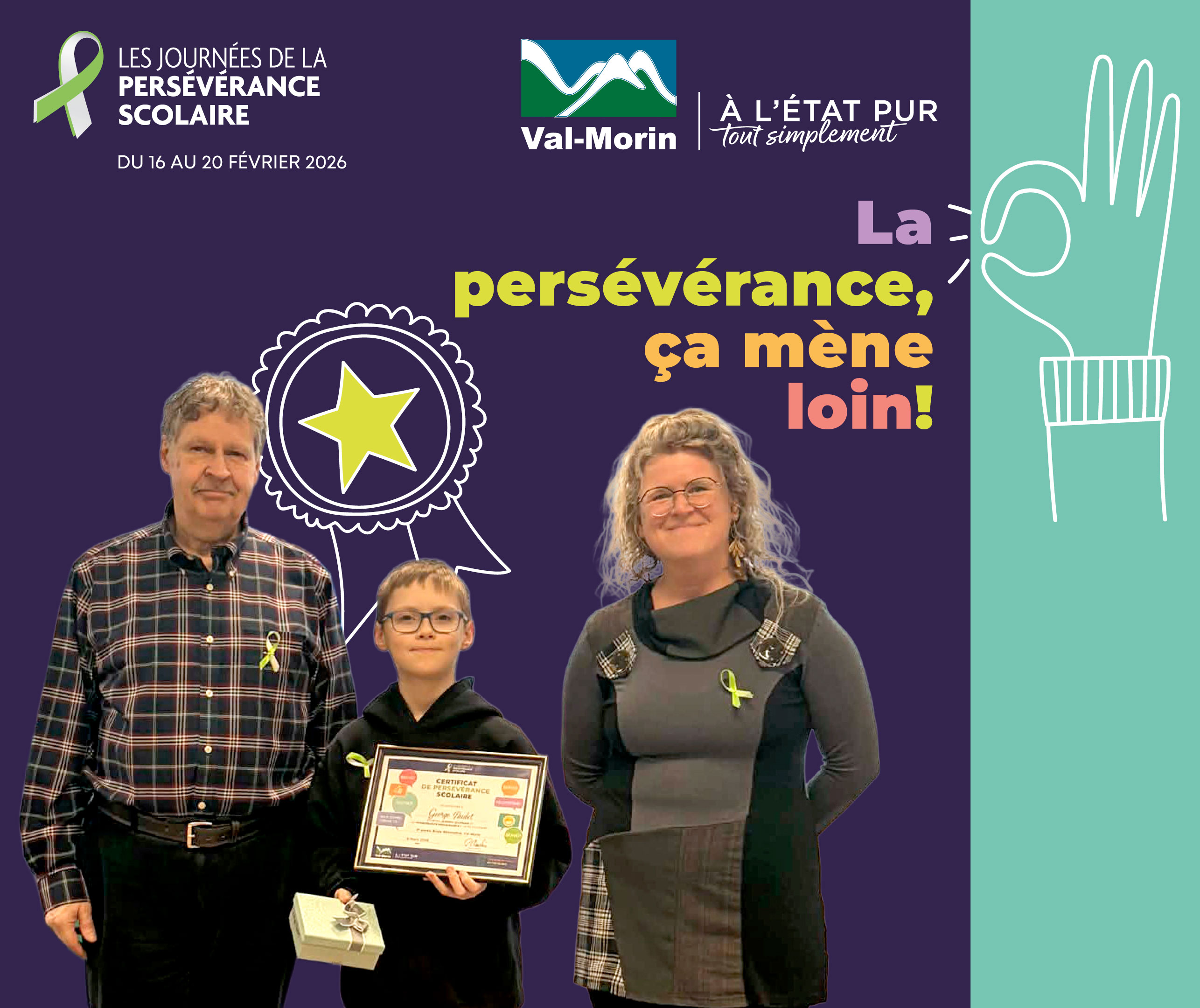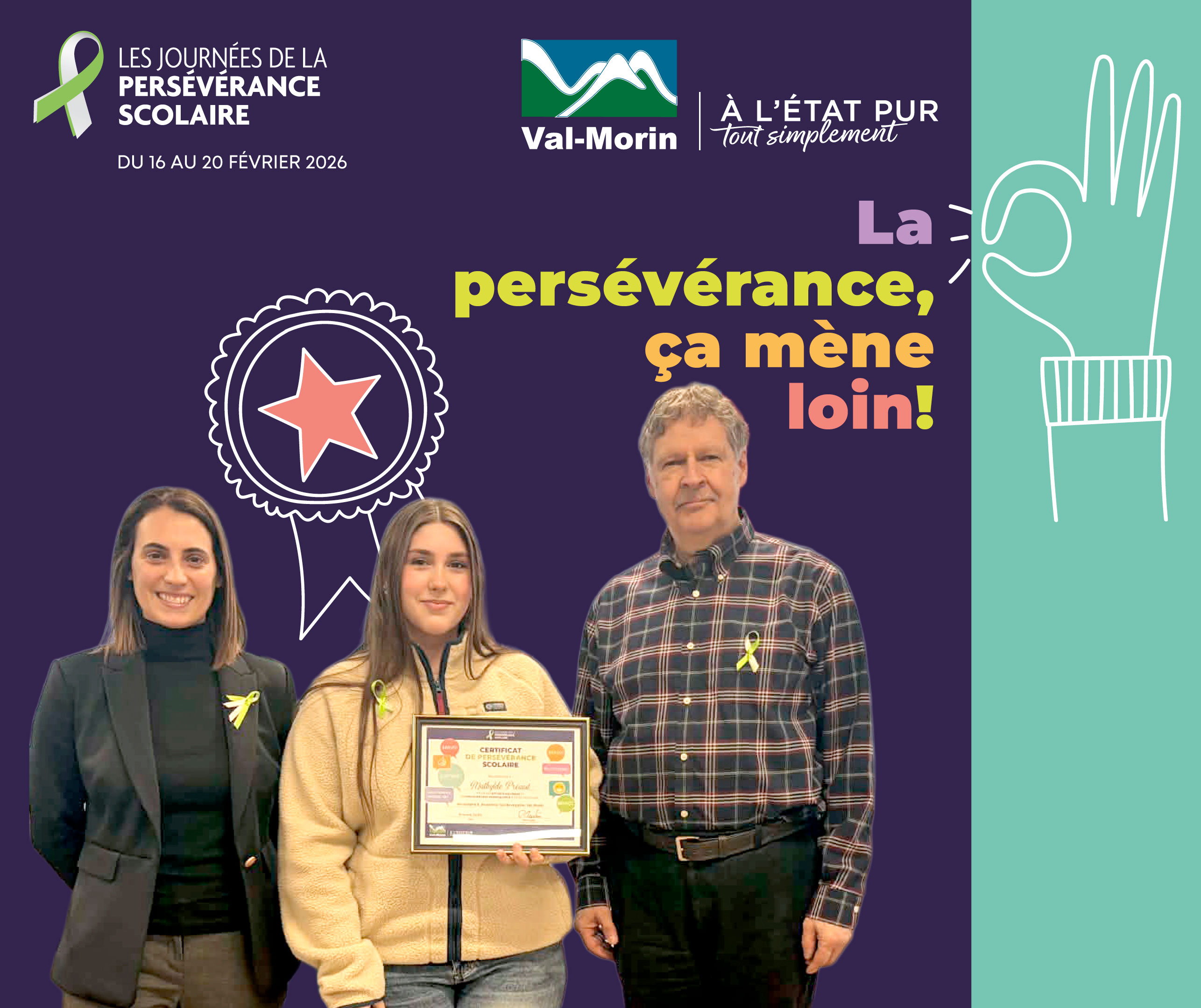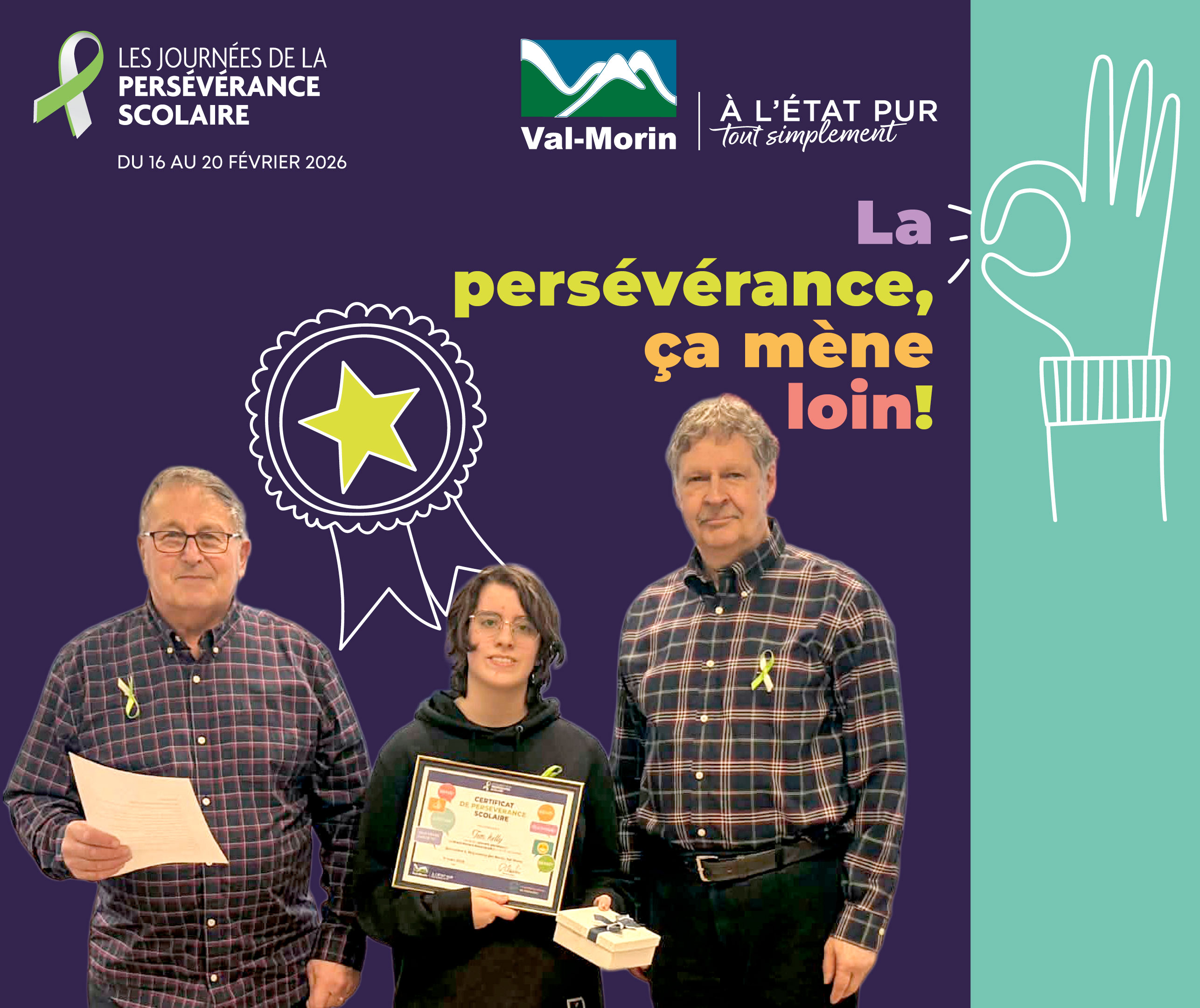 Lors de la séance du conseil municipal du 9 mars, la Municipalité de Val-Morin a eu le plaisir d’honorer les gagnants de la 2ᵉ édition du concours La persévérance, ça mène loin !, organisé dans le cadre des Journées de la persévérance scolaire.